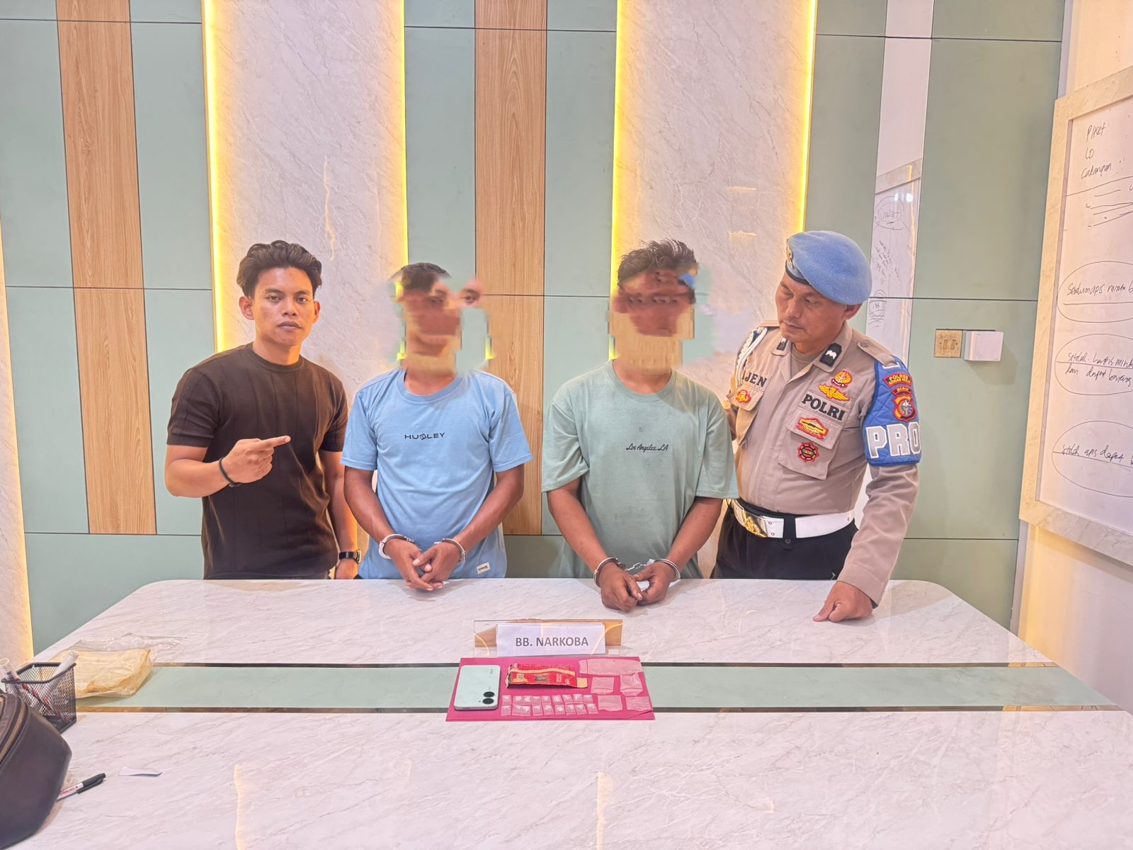 Reaksi cepat Kanit Reskrim IPDA Rahmat bersama anggota , akhirnya berhasil mengamankan dua orang laki laki yang bernama HZP alias Apis ( 24 ) dan AG alias Embot ( 40 ) yang saat bersamaan pada penguasaan APIS ditemukan 18 paket diduga Narkotika jenis sabu, dari keterangan APIS ianya mengatakan bahwa narkotika jenis sabu tersebut diperolehnya dari seorang laki laki yang bernama HS alias Helmi , pada hari Kamis tanggal 12 Februari 2026, sekira pukul 17.00 Wib di Rantau Kasai tepatnya di belakang rumah saudara HELMI,” pungkasnya .