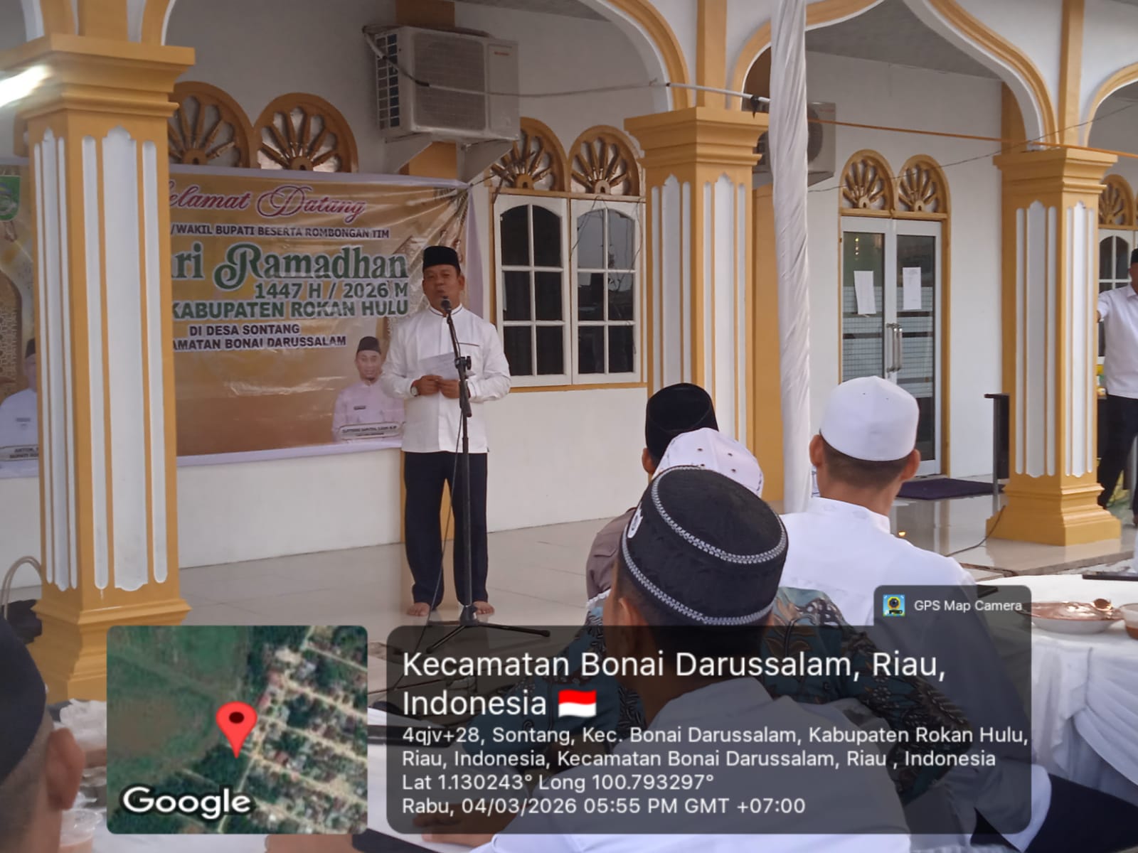 Safari Ramadan kali ini dihadiri langsung Wakil Bupati Rokan Hulu H. Syaparuddin Poti SH MM, didampingi Asisten I, Setwan, Inspektur Inspektorat, Kepala Disperindag, Kepala DPMPTSP, Kepala Disnakbun, dan Kepala Diskopukmtransnaker,