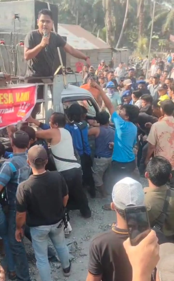 “Bukan hanya dihadang, kendaraan kami juga diserang, dan alat komunikasi kami dirusak oleh oknum tersebut,” ujar Erik, Ketua Pemuda Bangun Jaya.