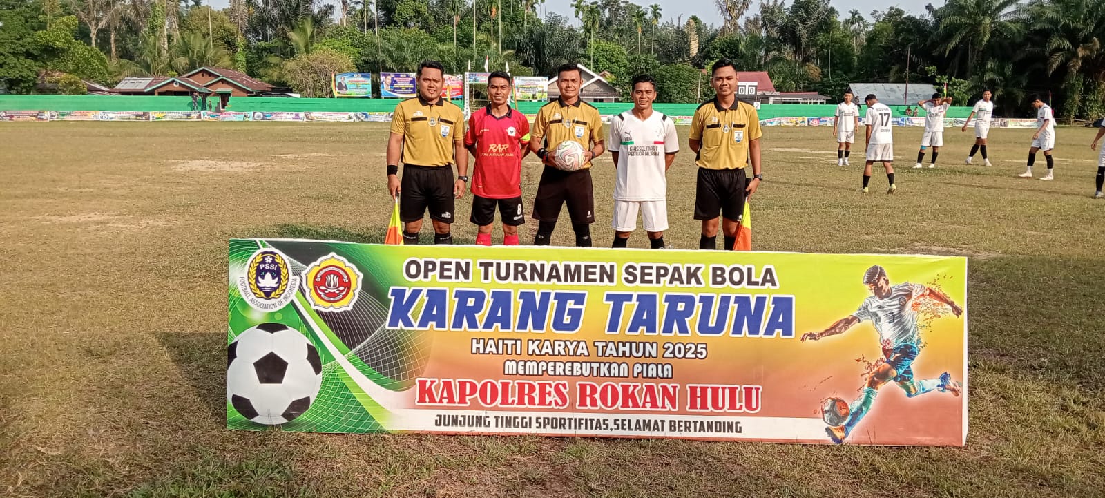 Rokan Hulu, Riau – Lapangan sepak bola Desa Rambah Tengah Barat bukan lagi sekadar hamparan rumput desa. Ia kini menjelma menjadi pusat denyut emosi, adrenalin, dan kebanggaan publik. Turnamen Piala Kapolres Cup menggema keras, menghadirkan laga-laga panas dengan klub-klub bertabur pemain berkelas yang membuat setiap pertandingan terasa terlalu sayang untuk dilewatkan.