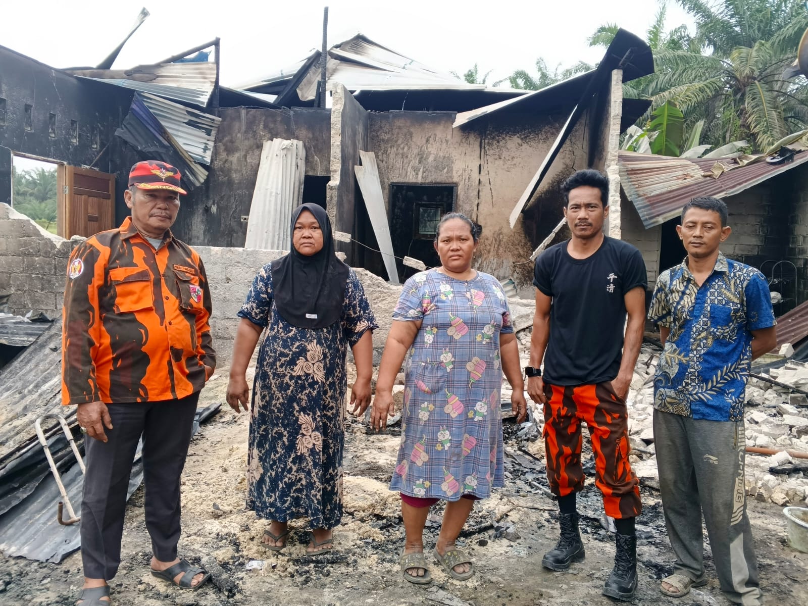 PAC Pemuda Pancasila Tambusai Utara Bantu Korban Kebakaran Rumah di Mahato , Tidak Ada Korban Jiwa .